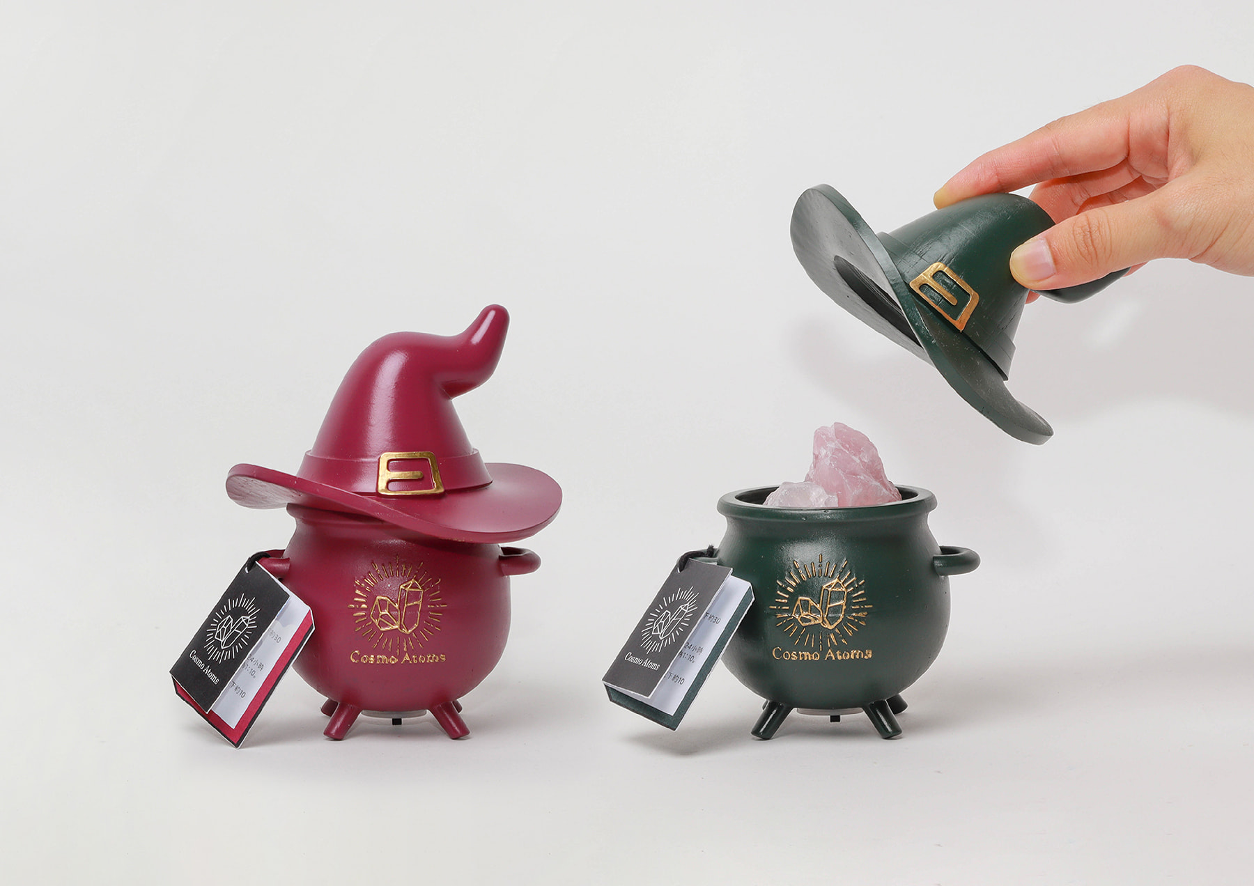 The container combines the magical impression of crystals with the imagery of a witch, as crystals are known for their healing and energy-balancing effects. The making process begins with modeling in Blender, followed by vat photopolymerization 3D printing. The printed model is then polished with sandpaper and finished with spray-painting.